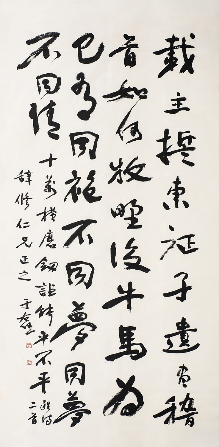 LOT5013 于右任 (1879-1964) 《同夢同情 》水墨紙本 軸,248 x 124 cm,上款人|辭修仁兄,預估價NTD : 200,000-400,000