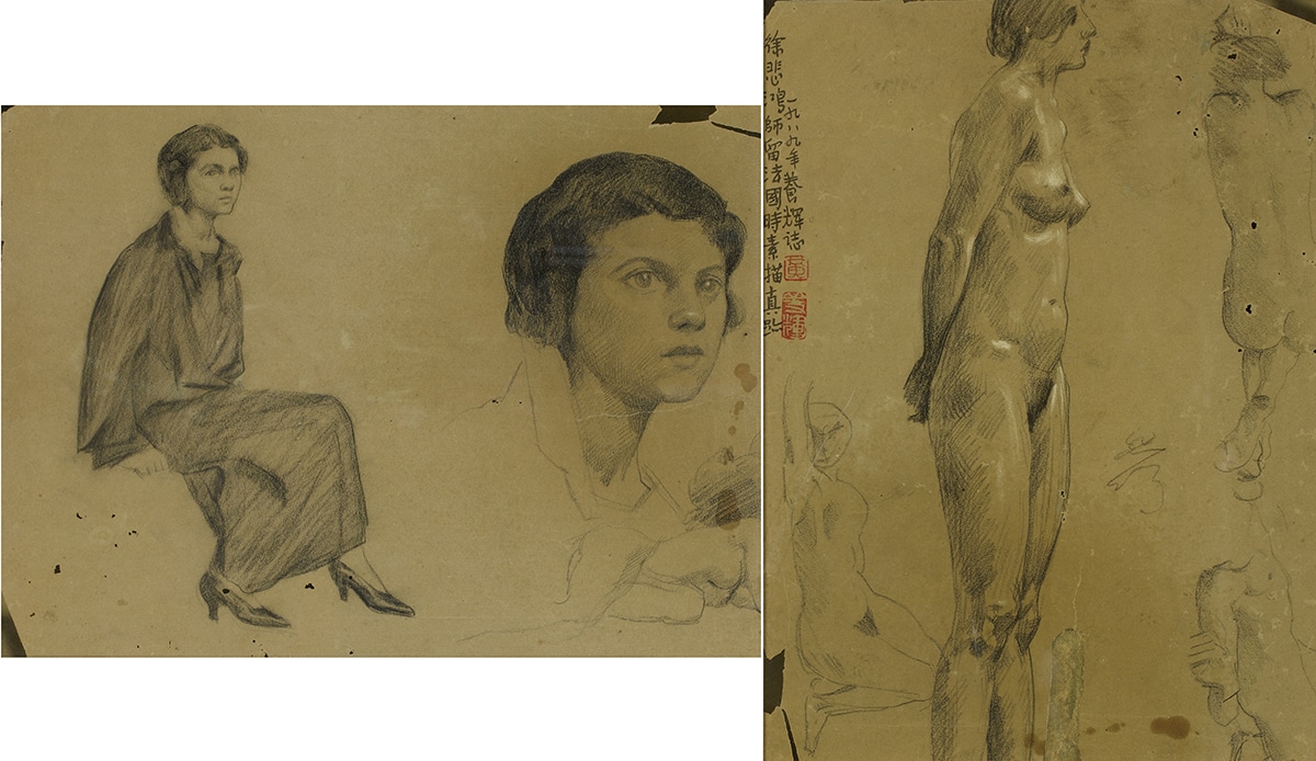 純正法國學院派法度:創作於1919-1927年留法期間,模特兒坐像與人體習作展現了嚴謹的解剖學訓練與光影體積感,印證了徐悲鴻「素描為萬物之造型基礎」的美學主張。此乃研究其早期西畫根基的珍貴實物,且為素描本撕下的雙面畫稿,稀缺性極高 。