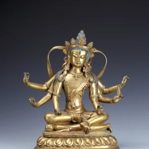 明嘉靖 銅鎏金鑲寶石四面佛像