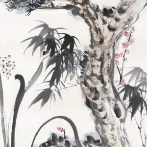 這場東京雅集最珍貴的結晶,當屬三人合作贈予日本女史山田喜美子的《清供圖》;喜美子並非普通友人,實為張大千在日本的親密知己,她深諳中國書畫,與大千交往甚篤,常為其在日本的藝術活動提供協助,這幅贈予她的作品,因而更顯特殊,既是對知音的酬答,也是三大家藝術實力的集中展現。